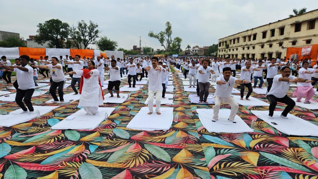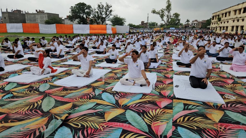 शासन की मंशा के अनुसार जनपद में 11वां अन्तर्राष्ट्रीय योग दिवस के अवसर पर मुख्य अतिथि/प्रभारी मंत्री श्रीमती विजयलक्ष्मी गौतम ने योगाभ्यास कार्यक्रम में उपस्थित मा0 जनप्रतिनिधिगणों, अधिकारियों/कर्मचारियों/शिक्षक/शिक्षिकाओं, छात्र-छात्राओं, बच्चों, स्काउड-गाइड व समस्त सम्भ्रान्तजनों को हार्दिक बधाई एवं शुभकामनाएं देते हुए कहा कि योग न केवल शरीर को स्वस्थ रखता है बल्कि यह मन, आत्मा एवं प्रकृति के बीच संतुलन स्थापित करता है। नियमित योग से हमारा मन शांत एवं एकाग्रचित रहता है। यह हमें सहनशीलता एवं करुणा की भावना से ओतप्रोत करता है। उन्होंने कहा कि योग शारीरिक, मानसिक एवं आध्यात्मिक स्वास्थ्य को एक साथ संतुलित करता है।