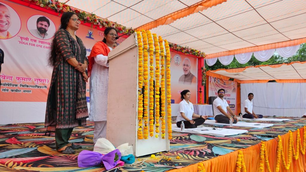 ‘पृथ्वी एक, स्वास्थ्य के लिए योग’ थीम पर आधारित 11वां अंतर्राष्ट्रीय योग दिवस आयोजन के अवसर पर मुख्य अतिथि/मा0 प्रभारी मंत्री जी, मा0 विधायक मेहदावल, मा0 विधायक धनघटा सहित सभी मा0 जनप्रतिनिधिगण, मंडलायुक्त, जिलाधिकारी, अपर जिलाधिकारी (न्यायिक), मुख्य विकास अधिकारी, अपर पुलिस अधीक्षक व उपस्थित सभी अधिकारियों/कर्मचारियों, छात्र-छात्राओं ने मा0 प्रधानमंत्री जी के उद्बोधन का सीधा प्रसारण देखा और सुना।