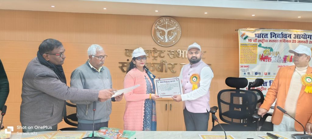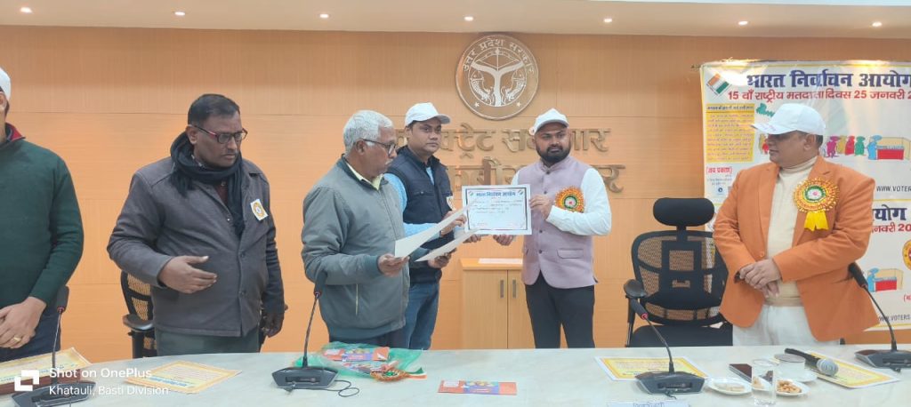 राष्ट्रीय मतदाता दिवस की थीम ‘‘वोट जैस कुछ नही, वोट जरूर डालेंगे हम’’ को सफल और मजबूत बनाने की दिशा में हम सबको मिल कर व्यापक स्तर पर इसका प्रचार-प्रसार करना तथा दिनांक 01 जनवरी 2025 को 18 वर्ष की आयु पूर्ण कर चुके प्रत्येक युवक/युवतियों को मतदाता सूची में शामिल करने हेतु जागरूक करना है। जिला निर्वाचन अधिकारी द्वारा आज राष्ट्रीय मतदाता दिवस के अवसर पर बूथों पर उत्कृष्ट कार्य करने वाले बीएलों को प्रशस्ति पत्र देकर सम्मानित किया गया। राष्ट्रीय मतदाता दिवस के अवसर पर जनपद की तीनों विधान सभा के 18 वर्ष पूर्ण कर चुके नये युवक/युवतियों को ईपिक कार्ड देकर कर उनसे मतदान करने एवं मतदान के प्रति लोगो को जागरूक करने हेतु प्रेरित किया।