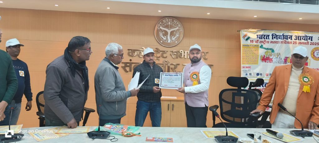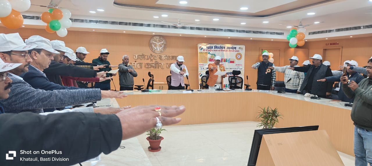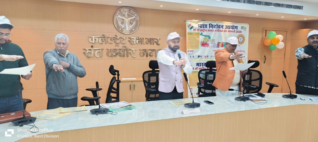 संत कबीर नगर। भारत निर्वाचन आयोग के निर्देश पर जिलाधिकारी महेन्द्र सिंह तंवर की अध्यक्षता में 15वें राष्ट्रीय मतदाता दिवस समारोह का आयोजन कलेक्ट्रेट सभागार में किया गया। इस अवसर पर अपर जिलाधिकारी जय प्रकाश उपस्थित रहे।