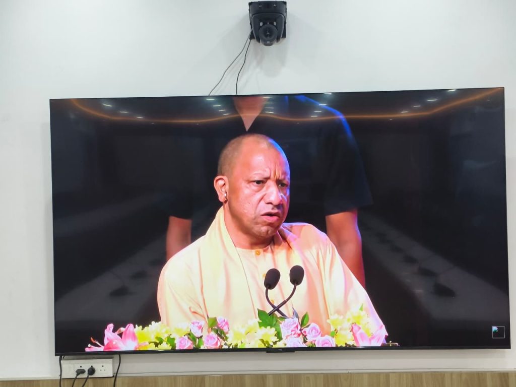 प्रयागराज। राष्ट्रवाद के अग्रदूत बंकिमचंद्र चटर्जी द्वारा वर्ष 1875 में रचित राष्ट्रगीत ‘‘वंदे मातरम्’’ के 150 वर्ष पूर्ण होने के अवसर पर मा0 प्रधानमंत्री जी एवं मा0 मुख्यमंत्री जी के कार्यक्रम का सजीव प्रसारण कलेक्ट्रेट स्थित संगम सभागार में किया गया।
