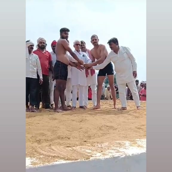 कार्यक्रम का शुभारंभ दूर-दराज से पधारे क्षेत्रीय पहलवानों के हाथ मिलवाकर किया गया। आयोजन में बड़ी संख्या में ग्रामीणजन उपस्थित रहे और उत्साहपूर्वक मुकाबलों का आनंद लिया।