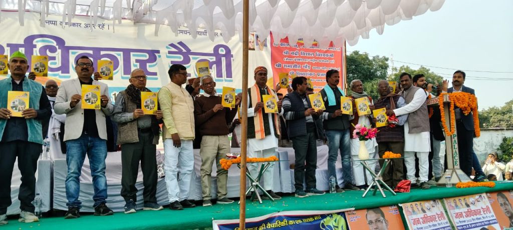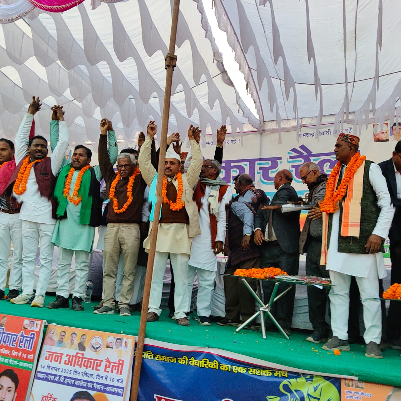आजमगढ़। राष्ट्रीय भागीदारी पार्टी, समता समाज पार्टी तथा समझदार पार्टी के संयुक्त तत्वावधान में जनाधिकार रैली का आयोजन दिनांक 14 दिसंबर 2025 को एस.के.पी. इंटर कॉलेज मैदान, आजमगढ़ में किया गया। रैली में देश और प्रदेश के विभिन्न जनपदों से बड़ी संख्या में प्रजापति समाज के लोगों ने भाग लेकर उत्साहपूर्ण सहभागिता दिखाई। कार्यक्रम से यह स्पष्ट संदेश गया कि प्रजापति समाज अब अपने हक और अधिकार को लेकर संगठित होकर आगे बढ़ने को तैयार है।