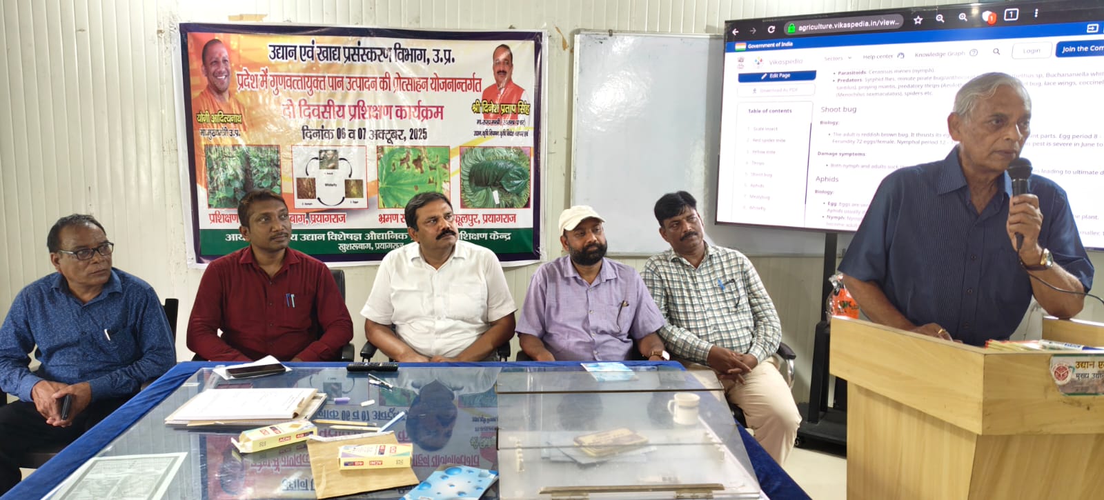 डॉ. सर्वेंद्र कुमार द्वारा पान की फसल से अधिक उत्पादन लेने वाले बिंदुओं पर चर्चा की गई। डॉ. सर्वेंद्र कुमार द्वारा पान की फसल में ट्राइकोडर्मा के प्रयोग तथा रोग नियंत्रण की जानकारी दी गई।