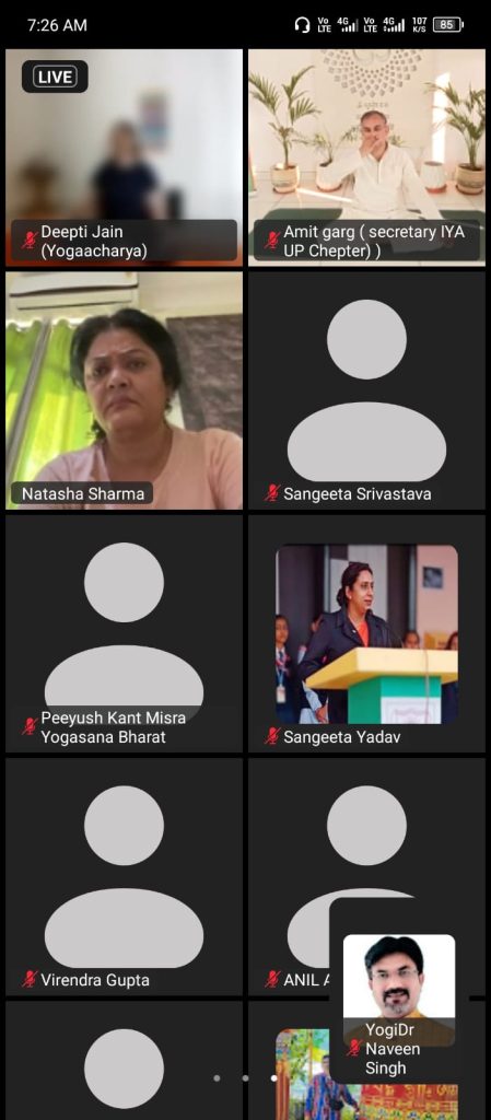 बस्ती। इंडियन योग एसोसिएशन उत्तर प्रदेश चैप्टर एवं आयुष मंत्रालय भारत सरकार द्वारा आयोजित योग अभ्यास श्रृंखला के अंतर्गत, प्रदेश के चेयरपर्सन पियूषकांत मिश्रा एवं सेक्रेटरी अमित गर्ग के दिशा-निर्देशन में अंतर्राष्ट्रीय योग दिवस से पूर्व पचास दिनों की विशेष श्रृंखला में प्रत्येक रविवार को सुबह 7 से 8 बजे विशिष्ट योगाचार्यों द्वारा ऑनलाइन एवं ऑफलाइन माध्यम से योग प्रशिक्षण नियमित रूप से आयोजित किया जाएगा।