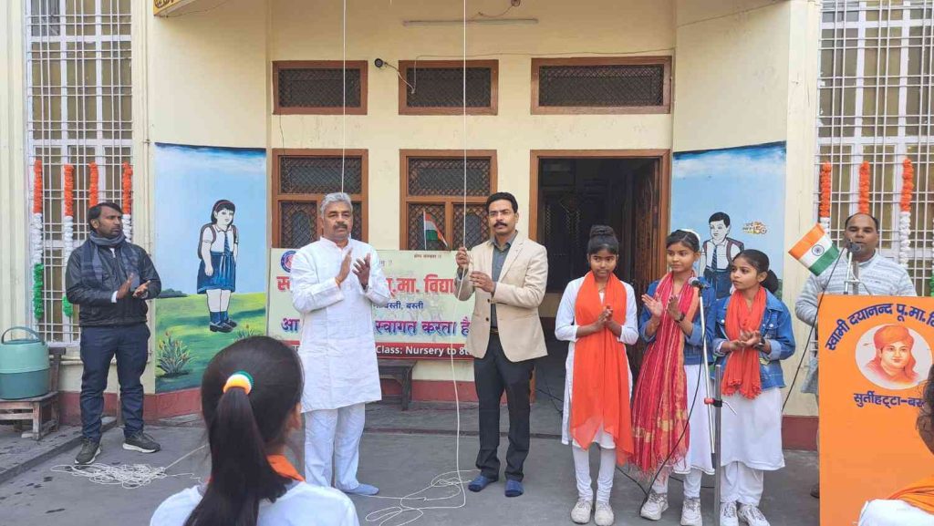 इस अवसर पर मुख्य अतिथि डा दुर्गेश पाल चिकित्सक मेडिकल कॉलेज बस्ती एवं ओमप्रकाश आर्य द्वारा ध्वजारोहण किया गया। ओम प्रकाश आर्य द्वारा मुख्य अतिथि को ओम चित्र भेंट कर उनका सम्मान किया गया। सांस्कृतिक कार्यक्रम में बच्चों ने गीत कविता, भाषण, लघु नाटिका और वसन्त गीत प्रस्तुत कर दर्शकों का मन मोह लिया। देशभक्ति गीत वन्दे मातरम् गीत की सामूहिक प्रस्तुति कर बच्चों ने सिर्फ वाहवाही ही नहीं लूटी बल्कि सबको देशभक्ति से ओतप्रोत कर दिया।