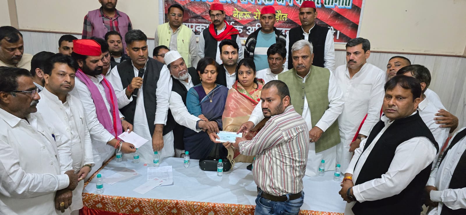 लखनऊ। बागपत के बड़ौत स्थित दिगंबर जैन पार्श्वनाथ मंदिर कॉलेज परिसर में हुए संविधान मान स्तंभ हादसे में मारे गए नौ लोगों के परिजनों को समाजवादी पार्टी ने आर्थिक सहायता प्रदान की। समाजवादी पार्टी के राष्ट्रीय अध्यक्ष एवं पूर्व मुख्यमंत्री अखिलेश यादव के निर्देश पर पार्टी प्रतिनिधिमंडल ने पीड़ित परिवारों को दो-दो लाख रुपये की आर्थिक मदद के चेक सौंपे और संवेदना व्यक्त की।
