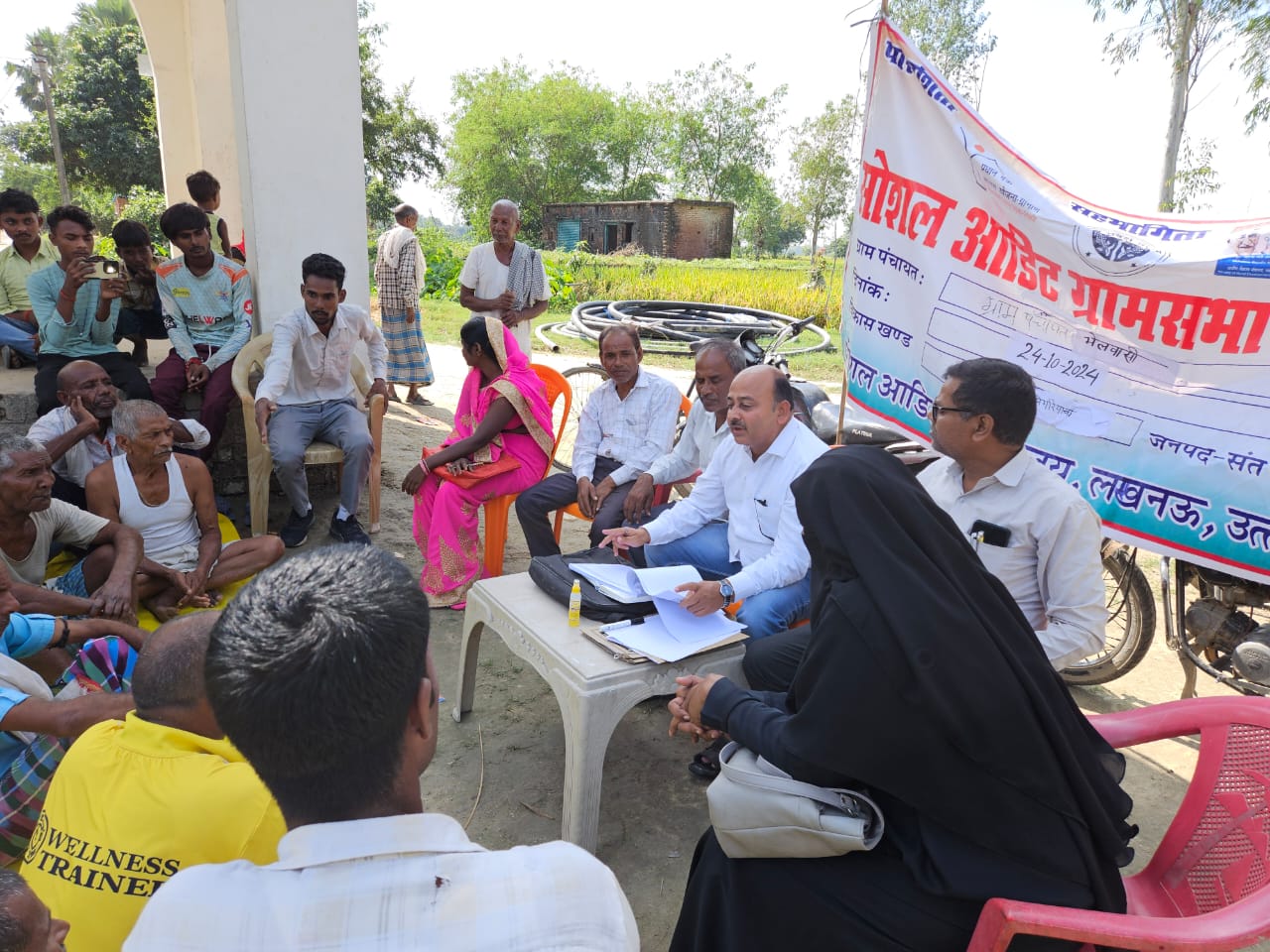 संत कबीर नगर। जनपद के सेमरियावा विकासखंड के अंतर्गत ग्राम पंचायत भेलवासिया में मनरेगा, प्रधानमंत्री आवास योजना सहित अन्य योजनाओं में ग्राम प्रधान प्रतिनिधि द्वारा कराए गए विकास कार्यों का दो दिवसीय स्थलीय व भौतिक सत्यापन करने के बाद सोशल आडिट टीम द्वारा बृहस्पतिवार को ग्राम पंचायत के आंगनवाड़ी भवन के पास खुली बैठक का आयोजन कर ग्रामवासियों की उपस्थिति में बिंदुवार चर्चा की गई। सोशल ऑडिट के दौरान गांव में बहुत सी कमियां मिलीं।