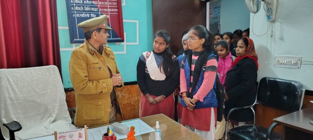 इस दौरान बालिकाओं को सम्पूर्ण थाना का भ्रमण कराकर आगंतुक, महिला हेल्पडेस्क, कार्यालय एफ.आई.आर., लेखन जी डी, आई जी आर एस, CCTNS आदि के बारे में विस्तृत जानकारी दी गई। मालखाने में छात्राओं को मालखाना भी दिखाया गया, एवं राइफल, बॉडीप्रोटक्टर, केनसील्ड आदि के बारे में भी बताया गया।