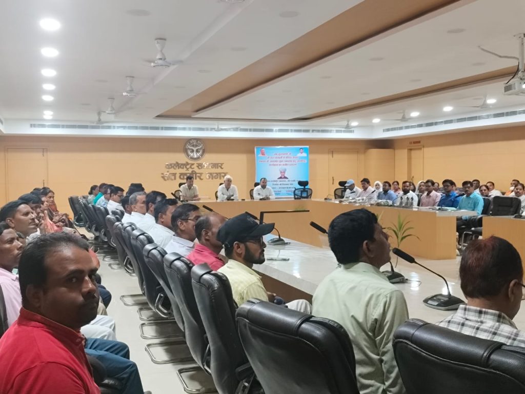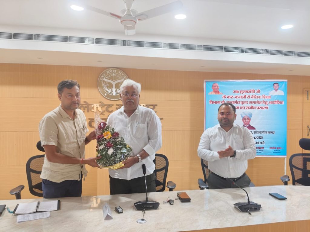 संत कबीर नगर। मुख्य विकास अधिकारी जयकेश त्रिपाठी की अध्यक्षता में शिक्षक दिवस पर शिक्षक समारोह का आयोजन कलेक्ट्रेट सभागार में किया गया। शिक्षक दिवस के अवसर पर कलक्ट्रेट सभागार में मा0 मुख्यमंत्री योगी आदित्यनाथ जी के कर कमलों से बेसिक शिक्षा विभाग के कार्यक्रम का सजीव प्रसारण मुख्य विकास अधिकारी जयकेश त्रिपाठी के नेतृत्व में धीरेन्द्र त्रिपाठी उप शिक्षा निदेशक व अमित सिंह जिला बेसिक शिक्षा अधिकारी की उपस्थिति में देखा गया।