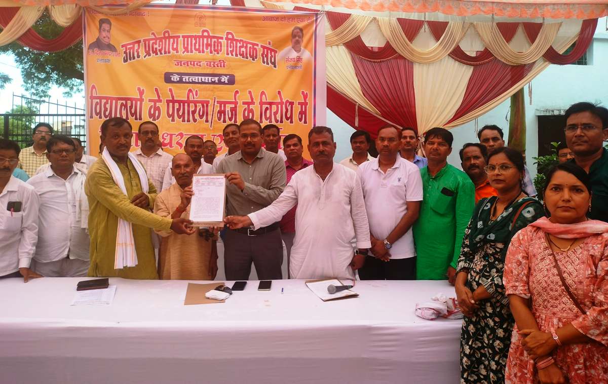 बस्ती। उत्तर प्रदेशीय प्राथमिक शिक्षक संघ के बैनर तले प्रदेश नेतृत्व के आह्वान पर मंगलवार को परिषदीय स्कूलों के पेयरिंग के विरोध में बड़ी संख्या में शिक्षकों ने संघ के जिलाध्यक्ष चन्द्रिका सिंह के नेतृत्व में बीएसए कार्यालय पर धरना दिया। इसके बाद जिला बेसिक शिक्षा अधिकारी को ज्ञापन सौंपा।