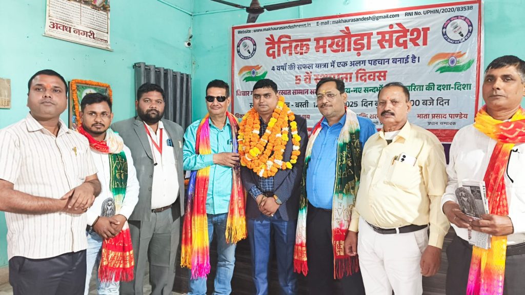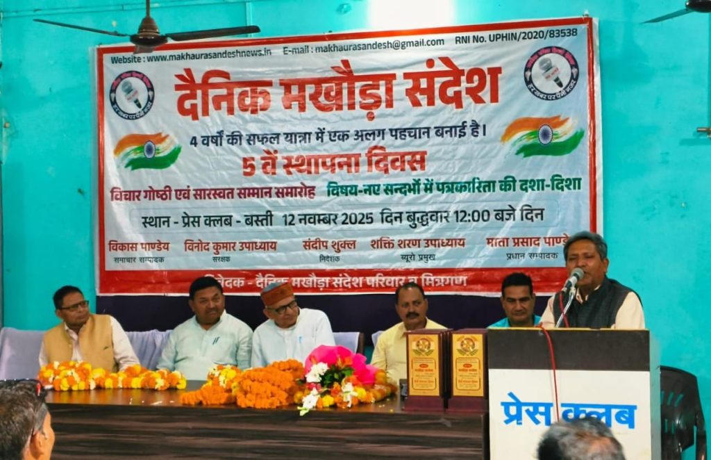 बस्ती। हिन्दी दैनिक अख़बार ‘मखौड़ा संदेश’ का पांचवां स्थापना दिवस बुधवार को प्रेस क्लब सभागार में मनाया गया। वरिष्ठ पत्रकार प्रदीप चंद्र पाण्डेय ने कार्यक्रम को संबोधित करते हुए कहा कि आज के दौर में पत्रकार के साथ न ही समाज है और न ही सरकार, ऐसे में अखबारों का प्रकाशन अत्यंत कठिन है। इसके लिए प्रकाशकों को स्थानीय स्तर पर स्थानीय खबरों पर विशेष ध्यान देना होगा।