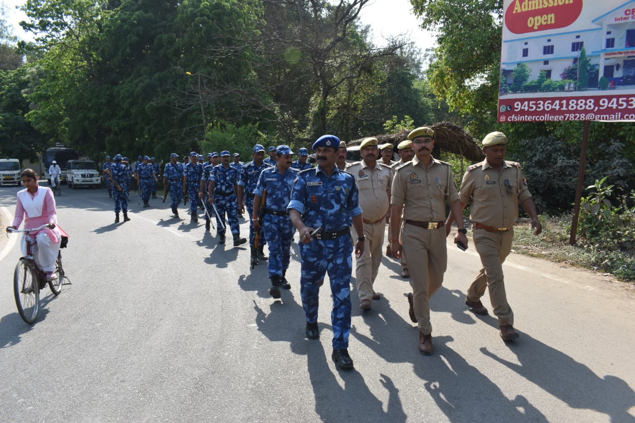 बस्ती। आगामी त्यौहार ईद उल फितर को शांतिपूर्ण और सुरक्षित माहौल में संपन्न कराने के उद्देश्य से आज शुक्रवार को थाना गौर पुलिस बल और RAF (रैपिड एक्शन फोर्स) की संयुक्त टीम ने विभिन्न इलाकों में पैदल मार्च किया।