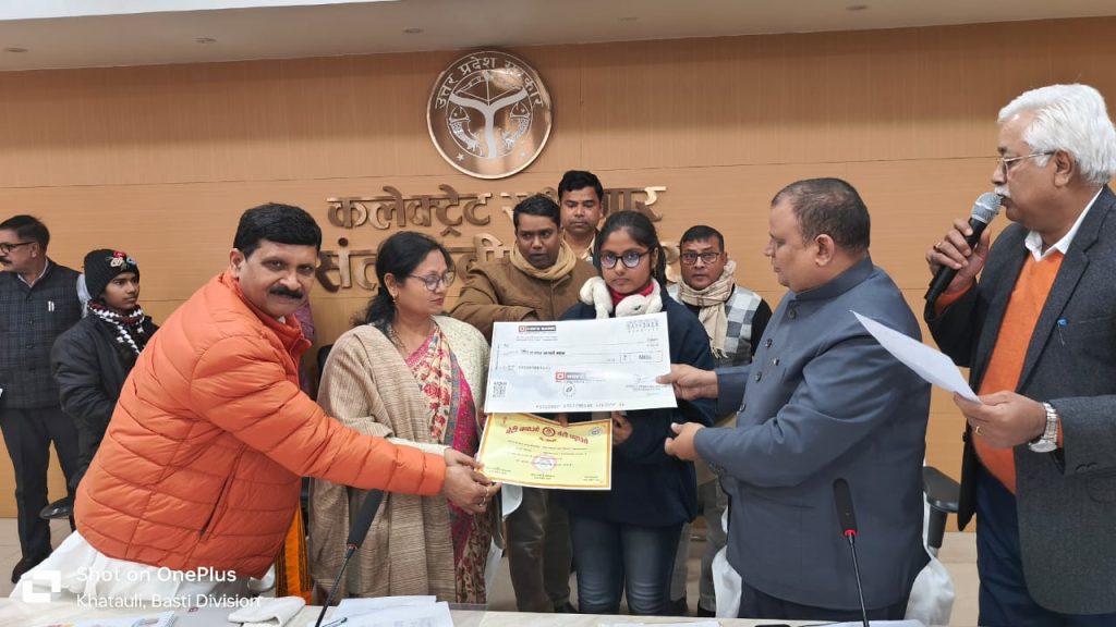 मा0 मंत्री जी कहा कि हम सभी का उद्देश्य जनपद संत कबीर नगर का सर्वांर्गीण विकास, भ्रष्टाचार मुक्त कार्य के साथ-साथ सरकार की योजनाओं का प्रचार-प्रसार कराना एवं नियमानुसार पात्रों को योजनाओं का लाभ दिलाना है। किसी भी स्तर पर उन्हें भ्रमित न करते हुए पूरी निष्पक्षता एवं पारदर्शिता के साथ पात्र व्यक्तियों को लाभान्वित किया जाए। उन्होंने कहा कि जनपद के ग्रामीण क्षेत्रों से आने वाले माताओं, बहनों सहित सभी फरियादियों की शिकायतों का त्वरित एवं गुणवत्तापूर्ण निस्तारण सुनिश्चित कराते हुए उसका फीड बैक भी लिया जाए। उन्होंने प्रशासन से महिलाओं, बेटियों का सम्मान, सुरक्षा एवं स्वालम्बन तथा गरीबों एवं वंचितों को लाभ एवं न्याय दिलाये जाने की अपेक्षा व्यक्त किया। जिलाधिकारी महेन्द्र सिंह तंवर ने जनपद के विकास हित में कराये जा रहे कार्याे एवं आगामी योजनाओं के बारे में मा0 मंत्री जी को अवगत कराया।