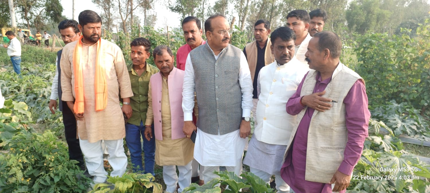 संत कबीर नगर। मा0 राज्यमंत्री (स्वतंत्र प्रभार) उद्यान, कृषि विपणन, कृषि विदेश व्यापार एवं कृषि निर्यात उत्तर प्रदेश शासन श्री दिनेश प्रताप सिंह जी द्वारा प्रगतिशील कृषक सुरेन्द्र राय, ग्राम उमिला विकास खंड- सेमरियावां जनपद संत कबीर नगर के प्रक्षेत्र का भ्रमण किया गया। माननीय मंत्री जी द्वारा कृषक प्रक्षेत्र पर लगायी गयी फसलों स्क्वैश, बीन्स, मटर, स्ट्रॉबेरी का निरीक्षण किया गया।