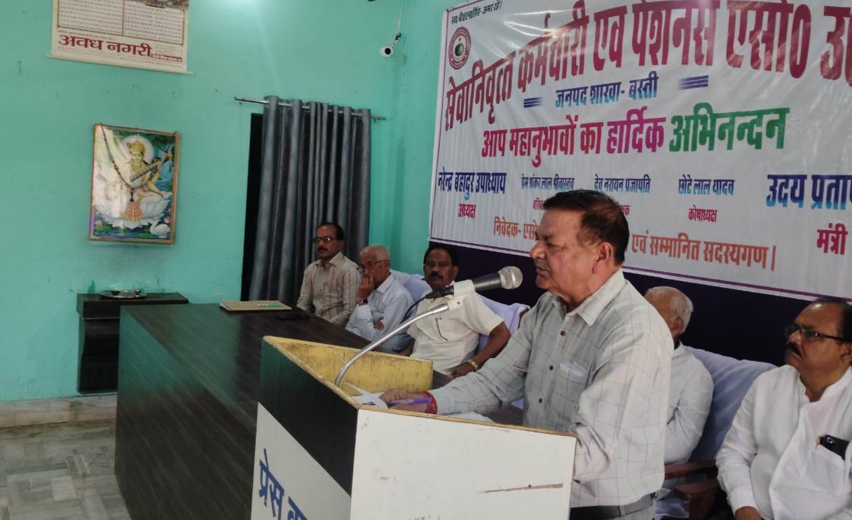 बस्ती। सेवानिवृत्त कर्मचारी एवं पेंशनर्स एसोसियेशन उ.प्र. की बस्ती शाखा की मासिक बैठक प्रेस क्लब सभागार में हुई। सभी पेंशनर्स एक दूसरे के गले मिले और अबीर गुलाल लगाकर होली की बधाइयां दी। बैठक में पेंशनर्स की समस्याओं और कोषागार में तैनात भूपेश विश्वकर्मा के आपत्तिजनक कार्य व्यवहार का मुद्दा छाया रहा।