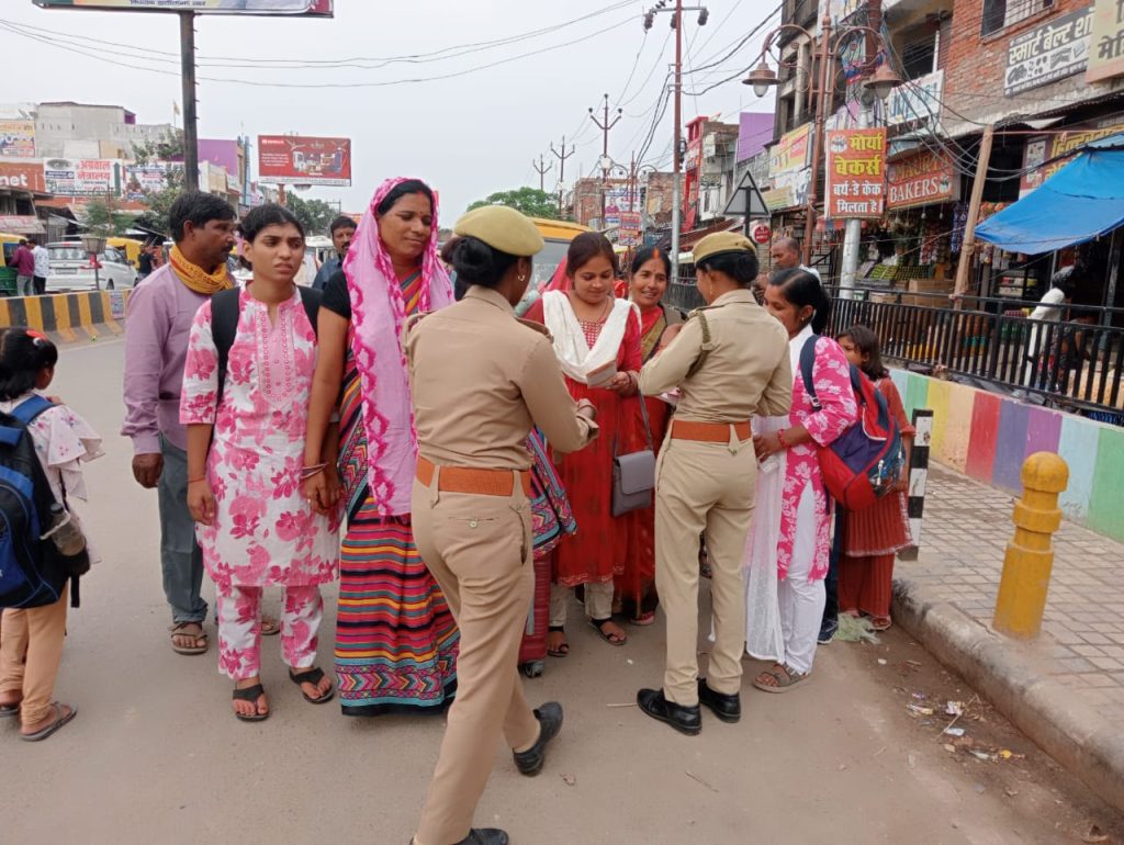 संत कबीर नगर। मंगलवार को पुलिस अधीक्षक संदीप कुमार मीना के निर्देश के क्रम में शासन द्वारा चलाए जा रहे महिला मिशन शक्ति फेज 5.0 अभियान में बच्चियों/महिलाओं के विरुद्ध छेड़छाड़ व यौन उत्पीड़न जैसे अप्रिय घटनाओं की रोकथाम हेतु एंटी रोमियो टीम महिला थानाध्यक्ष श्रीमती पूनम मौर्या के संचालन में एवं उप निरीक्षक श्री रामतीर्थ त्रिपाठी व म0आ0 नेहा सिंह महिला पीआरडी लक्ष्मी यादव म0 पीआरडी0 सरिता महिला पीआरडी इसरावती महिला थाना जनपद संत कबीर नगर द्वारा चलाए जा रहे मिशन शक्ति फेज 5.0 अभियान के अंतर्गत सिटी क्षेत्र में भ्रमण कर बालिका /महिला सुरक्षा अभियान चलाया गया।
