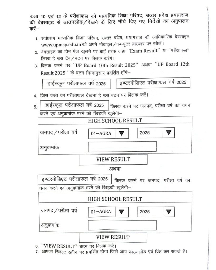 - “UP Board 10th Result 2025” या “UP Board 12th Result 2025” विकल्प चुनें।