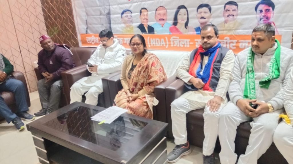 संत कबीर नगर। शनिवार को माननीय प्रधानमंत्री नरेंद्र मोदी जी के नेतृत्व में केंद्र की सरकार द्वारा मनरेगा की जगह/वी, बी, जी ,राम जी/विकसित भारत गारंटी का रोजगार और आजीविका मिशन 2025 को लेकर जनपद के प्रभारी ग्राम विकास राज्य मंत्री माननीय विजयलक्ष्मी गौतम द्वारा पूर्व निर्धारित कार्यक्रम के तहत स्थानीय डाक बंगले में प्रेस वार्ता किया गया।
