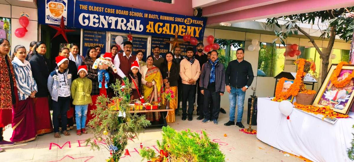 बस्ती। सेन्ट्रल एकेडमी सीनियर सेकेन्डरी स्कूल में भारत रत्न पूर्व प्रधानमंत्री अटल बिहारी वाजपेयी की जन्म जयंती, क्रिसमस डे और तुलसी पूजन का आयोजन उत्साहपूर्ण वातावरण में किया गया। इसका उद्देश्य विद्यार्थियों में राष्ट्र प्रेम, नैतिक मूल्यों, भारतीय संस्कृति तथा सर्वधर्म समभाव की भावना को विकसित करना रहा।